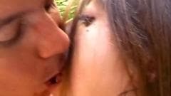 Os beijos apaixonados que esta morena vai dar ao seu amigo, vão lhe dar muito tesão até que eles fodem de uma maneira gostosa ao ar livre