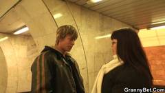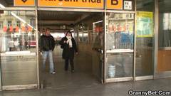 Vovó BBW consegue um pinto jovem na estação ferroviária