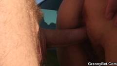 Esta mulher é abordada enquanto caminha na estrada. Eles andam de carro e a diversão começa. Eu chupo o pau do jovem antes de uma boa foda!
