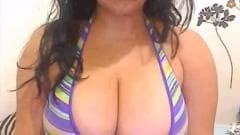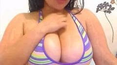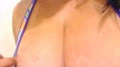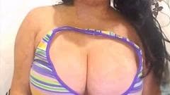 Esta morena Latina tem um par de seios perfeitos, grandes e redondos, que ela exibe na frente da câmera enquanto acaricia para provocá-los.