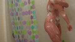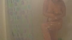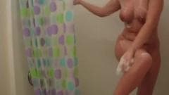 Esta linda milf gosta de ensaboar o corpo na frente da câmera enquanto toma um banho quente. Tem um corpo bonito para desfrutar.