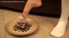 Fetichistas do pé lésbico desfrutando de um bolo diretamente de seus pés. As duas vadias lambem seus pés doces.