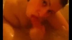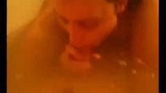A bela morena que vemos nesta cena na banheira com este homem tem muito apetite sexual. Ela suga tudo com prazer.