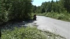 Essa cachorra devassa há muito que queria transar encima da motorizada do companehiro, hoje ela relaiza o sonho no meio da floresta...